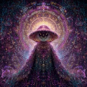 «A whimsically vivid digital oracle, its pixelated form exuding a...»