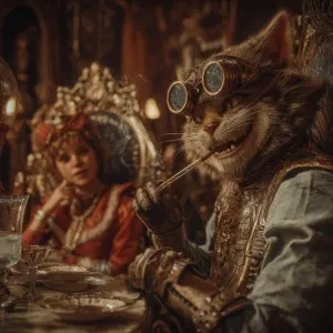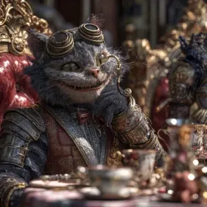 «A realistic steampunk fantasy scene, ultra-detailed: the Cheshir...»