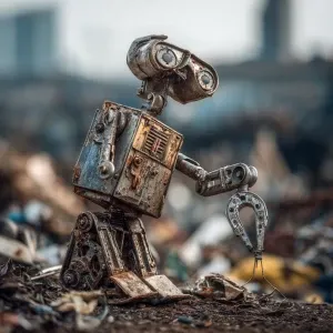 «A robot picks up metal debris during storms and tempests. The ro...»