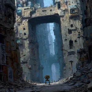«A vast, abandoned cityscape. Crumbling buildings fill the enviro...»