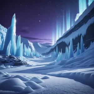 «A frozen world displaying a stunning array of icy landscapes: fr...»