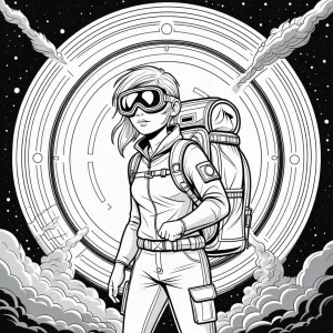«Black and white coloring page of a Quantum Quest Explorer travel...»