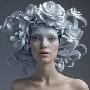 «A mesmerizing woman with sleek, jet-black hair cascading in loos...»