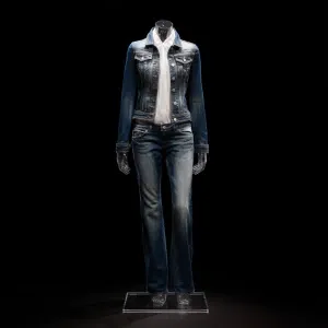 «jeans and jeans jacket on ghost mannequin»