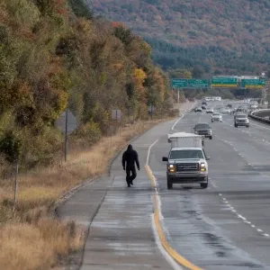 «cuerpo entero ella es bajita, un hombre muy gordo y alto la mira»