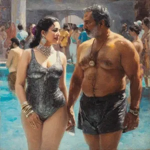 «Hyperrealism,oil painting ,a indian muscular beefy sweaty man...»