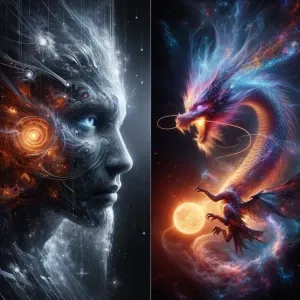 «Dramatic digital painting. A celestial dragon bursts forth from...»