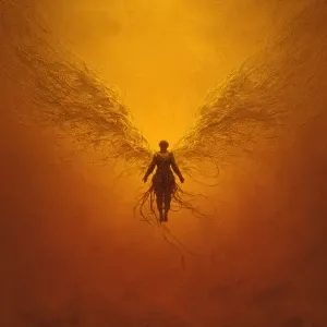 «A darkwave sorcerer, depicted in a regal manner, gazes intensely...»