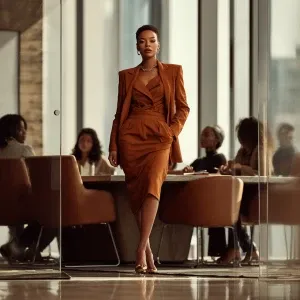 «A powerful Black woman standing at the head of a modern, glass-w...»
