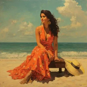 «Hyperrealism ,salma hayek on goa beach»