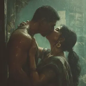 «Create a hyperrealism painting of a muscular, sweaty Indian man...»