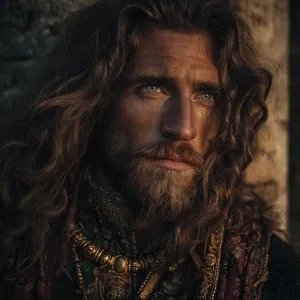 «In the shimmering light of the golden hour, a glitzy wild warloc...»