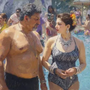 «Hyperrealism,oil painting ,a indian muscular beefy sweaty man...»