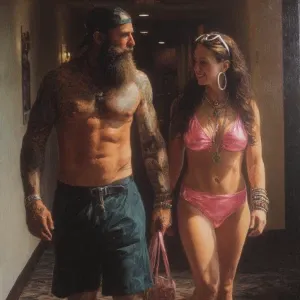 «realism painting ,a australia muscular beefy bearded tattoed sw...»