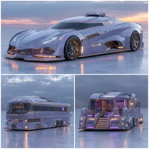 «imagine prompt: Futuristic cyberpunk vehicle, Corvette speed mee...»