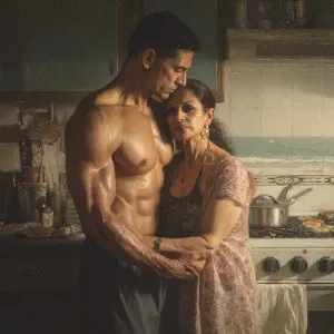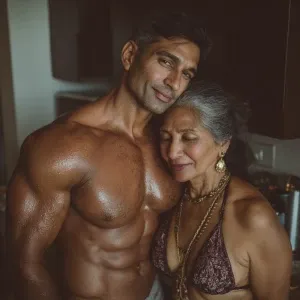 «Hyperrealism photo painting,A sweaty beefy kashmiri man walking...»