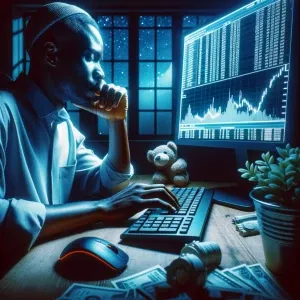 «Génère une photo d'un africain devant un ordinateur pendant qu'i...»