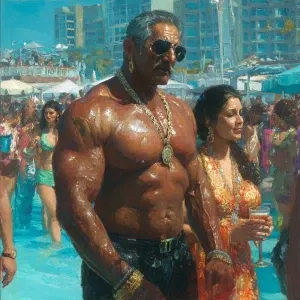 «Photo hyperrealism, painting,a muscular beefy kerela son in law...»