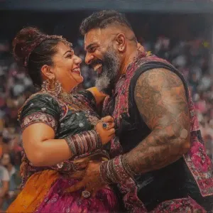 «Hyperrealism oil painting.big guajarat stadium with people enjoy...»