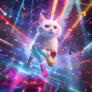 «A pop star cat inspired by Taylor Swift, sprinting off stage in...»