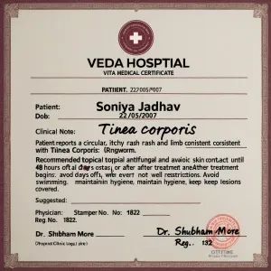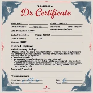 «Create a medical certificate for a patient named Khushi, aged 19...»
