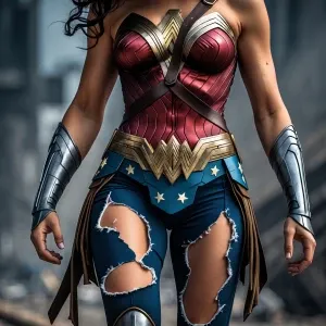 «Create an image of Wonder Woman with torn pants, showcasing the...»