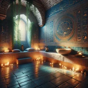 «Bathroom 3 – Scribe’s Alcove: Intimate dreamscape bathroom style...»