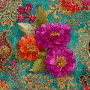 «Vibrant boho paisley floral mixed-media scrapbook paper, turquoi...»