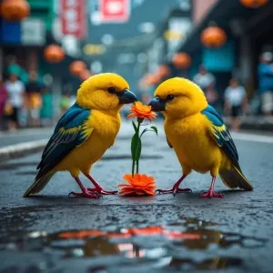 «A vibrant scene set on a sunny day showcasing a lively group of...»