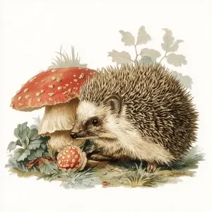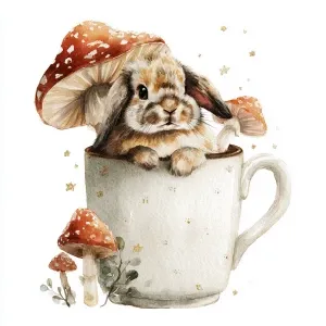 «A vibrant illustration of a Rabbit under mushroom, watercolor on...»