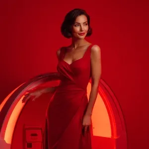 «Generate two full-body images side by side of a woman in her mid...»