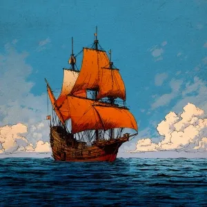 «A vessel from the 1400s ship in the ocean same colors»