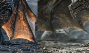«Hyperrealistic, photo-real dragon — Vezonar, massive ash-black m...»