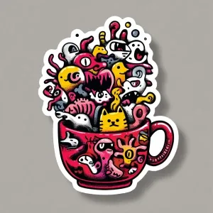 «Create a sticker for A vibrant illustration of a coffee cup over...»