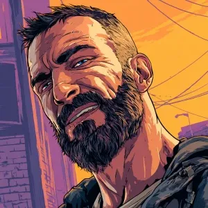 «ai agent, in the style of a Grand Theft Auto loading screen artw...»