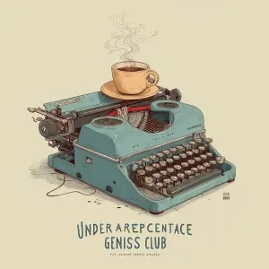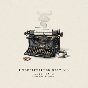 «minimalist line-art illustration of a vintage typewriter, steam...»