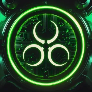 «glowing biohazard-like patterns, acid green circuitry, toxic glo...»