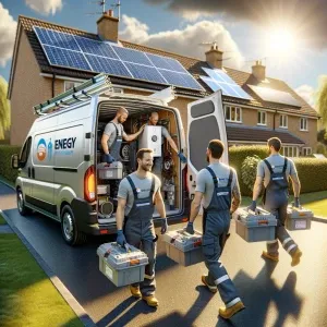 «Inside a sleek modern office, engineers from H&R Energy review 3...»