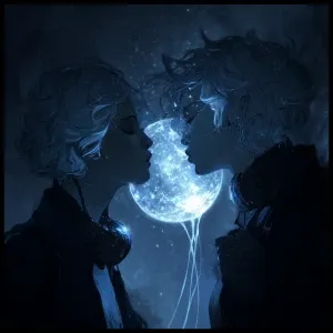 Cinematic Close-Up — Two spectral figures kiss bene...»