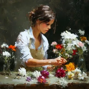 «Композиция цветочный мастер-класс. Девушка собирает букет из раз...»