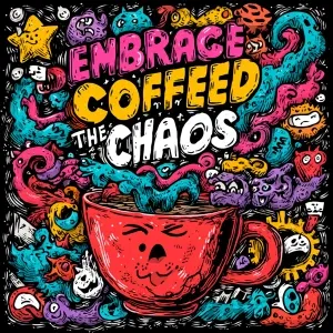 «A vibrant illustration of a coffee cup overflowing with chaotic...»