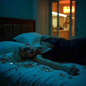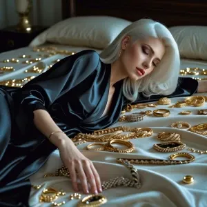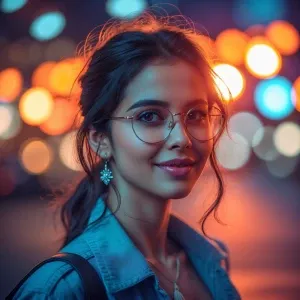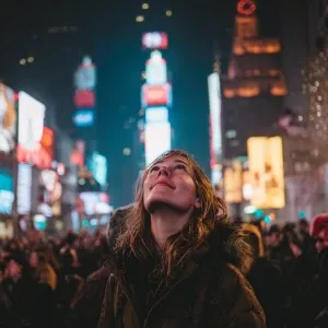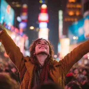 «A young woman celebrating New Year's Eve amidst the vibrant ligh...»
