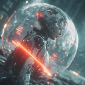 «rain-slick pavement lies a mysterious spherical device, spinning...»