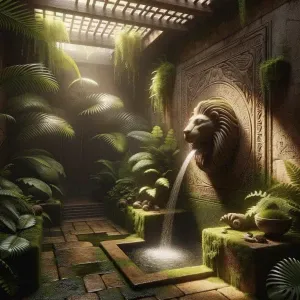 «Create an image of a grand shower oasis hidden inside an ancient...»