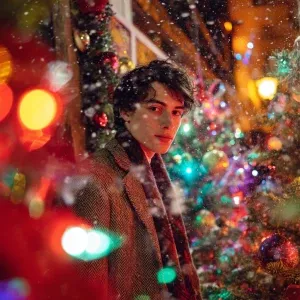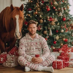 «man sitting near Christmas tree looking into the camera in Chris...»