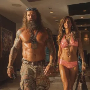 «Create a hyperrealistic oil painting of a muscular, bearded, and...»