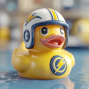«A 3d image of a rubber duck wearing a football helmet and with t...»