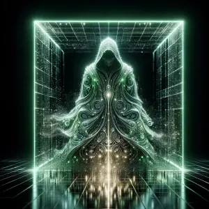 «In the ethereal glow of a venerable phosphorescent quantum encry...»