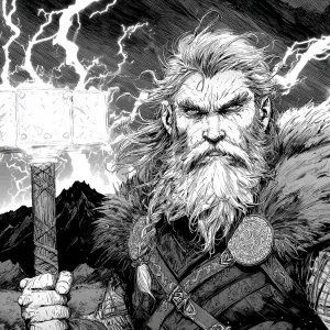 «Graphic novel style illustration of Thor, Norse god of thunder,...»