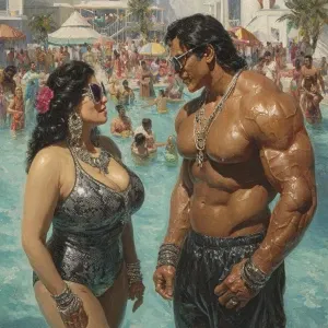 «Hyperrealistic art,realism.a gujarati muscular beefy bearded tat...»